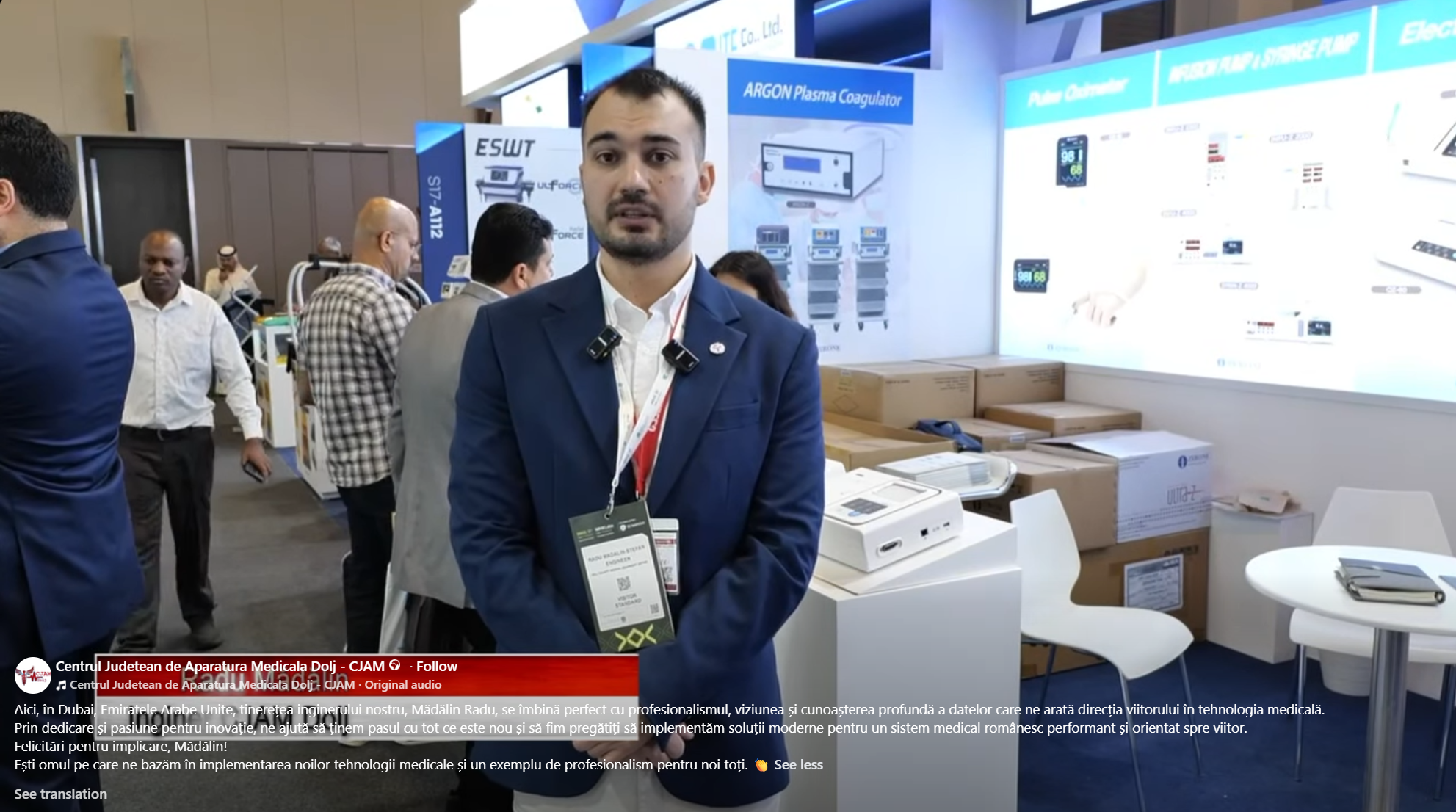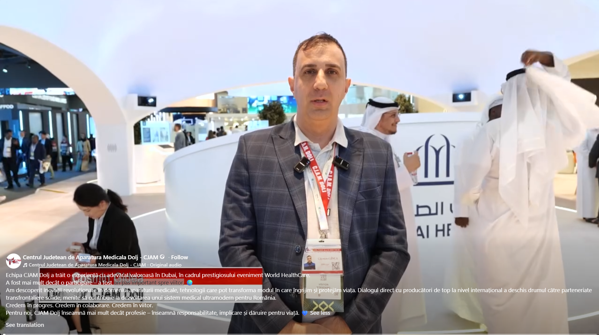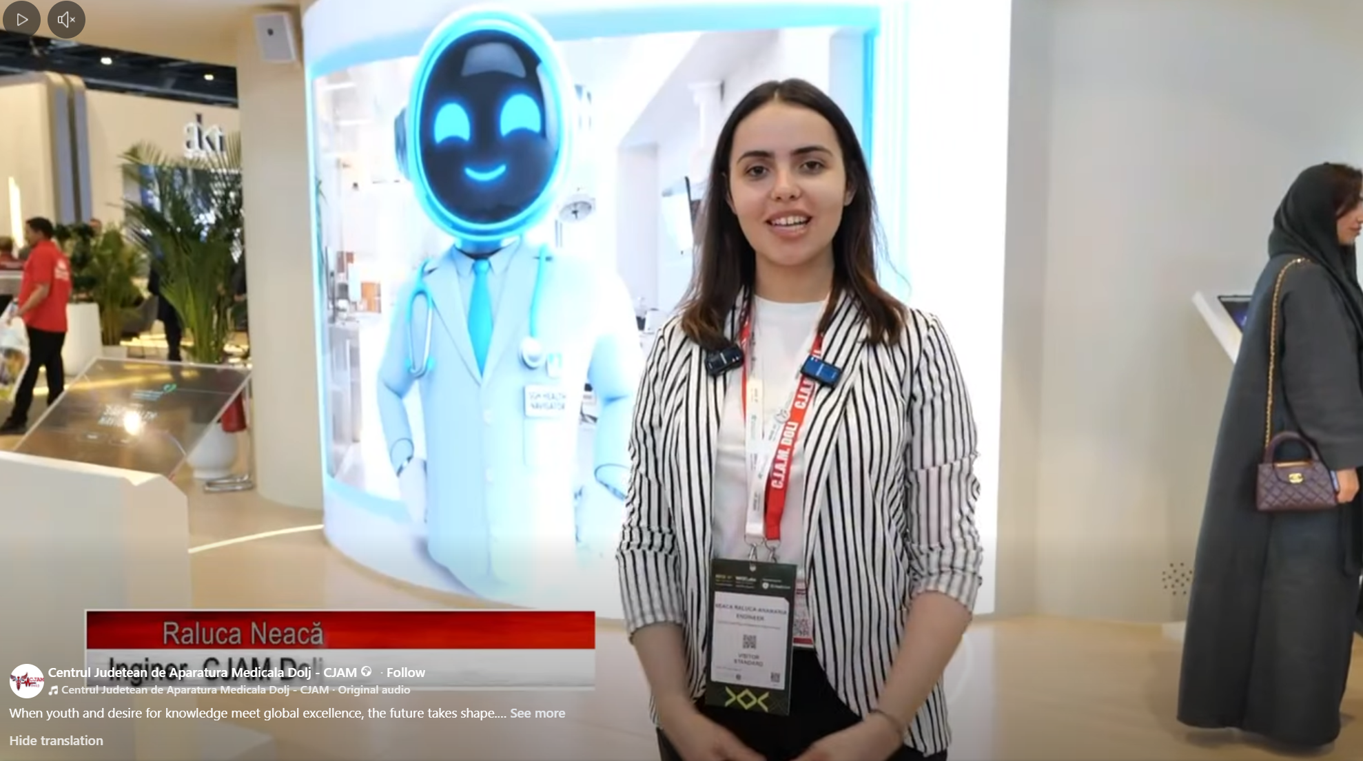 Aici, la Dubai, colega noastră, inginer Raluca Neacă, demonstrează că pasiunea, curajul și profesionalismul merg mână în mână cu performanța marilor producători de echipamente medicale din lume.